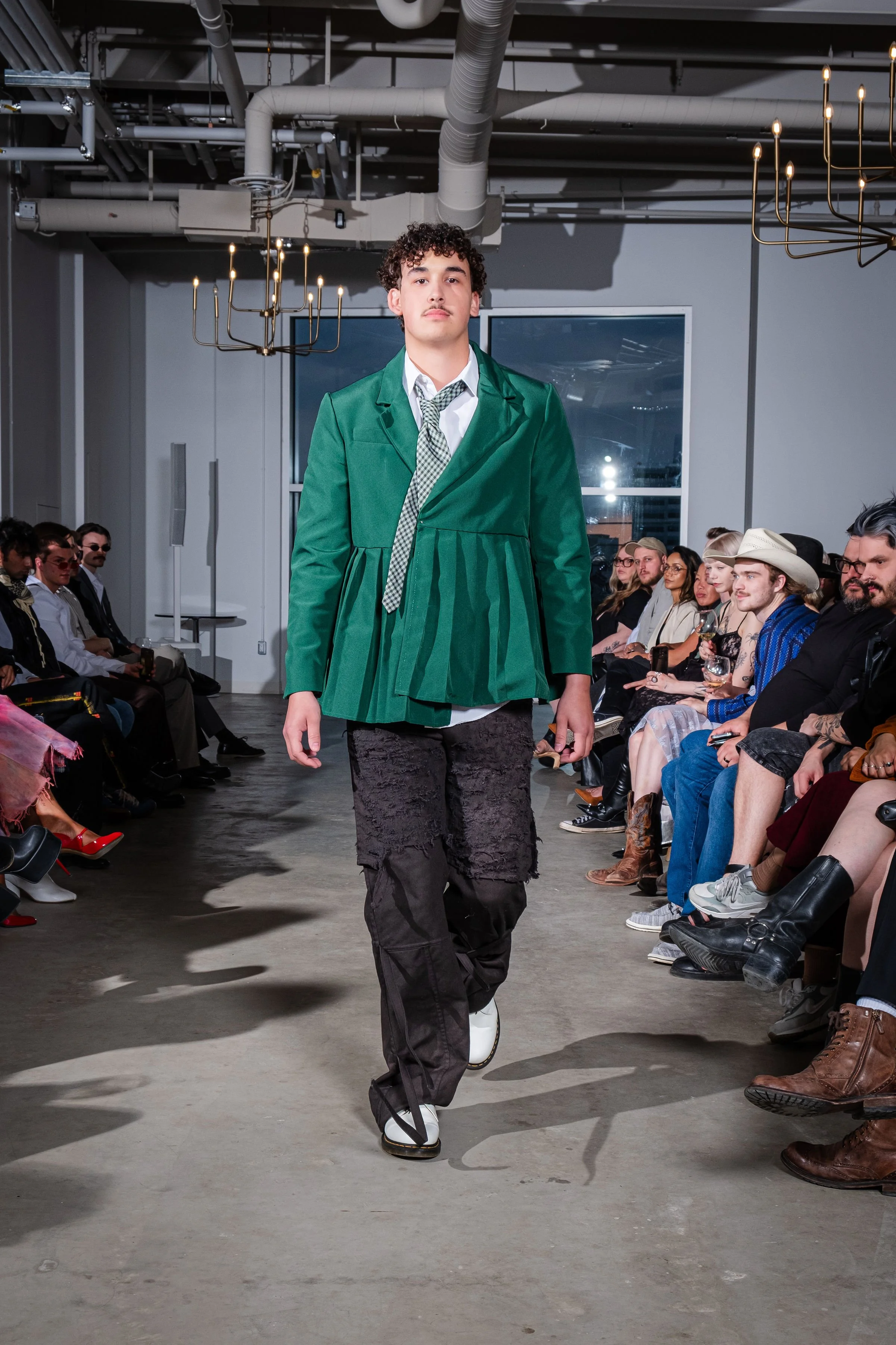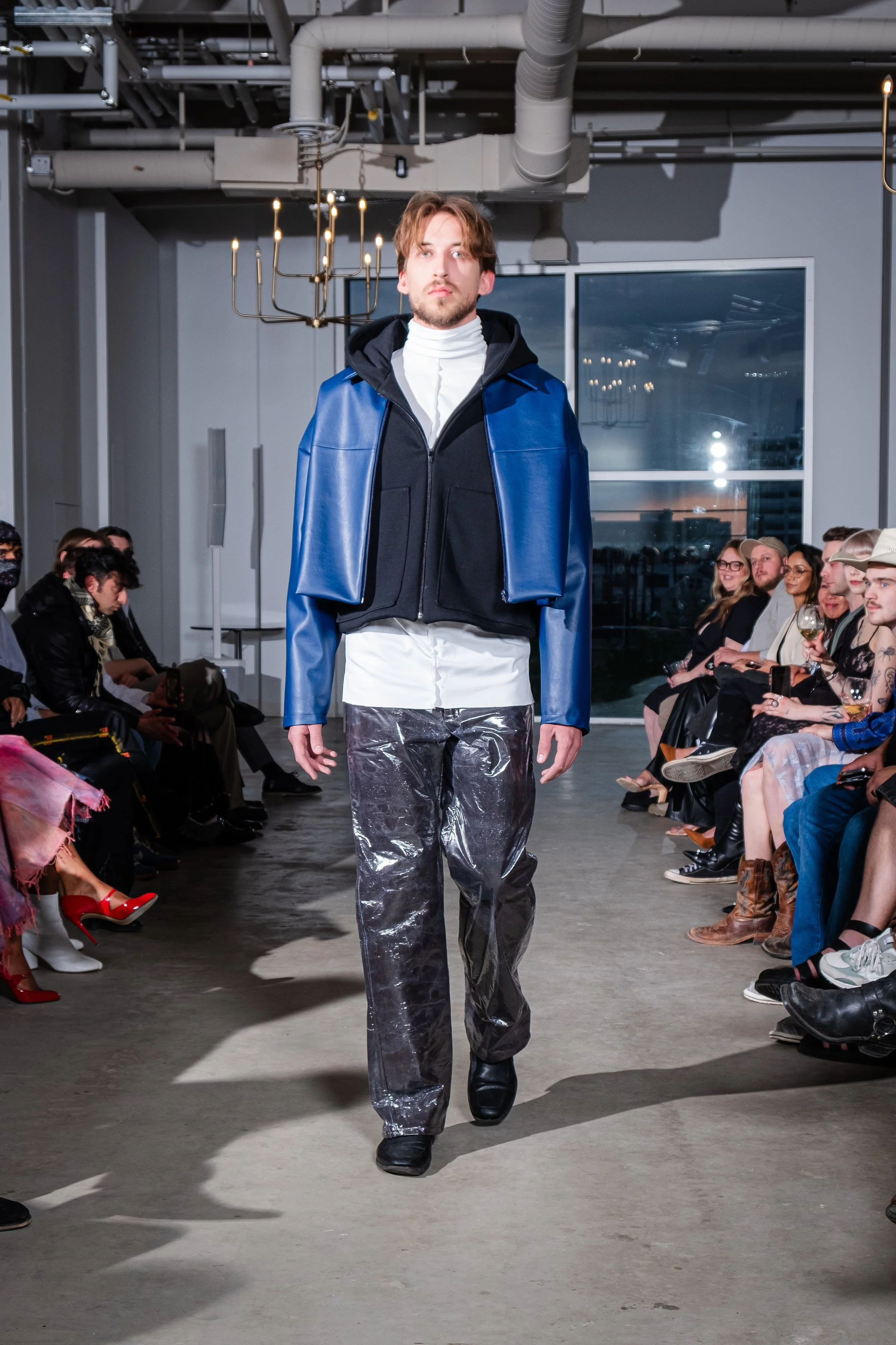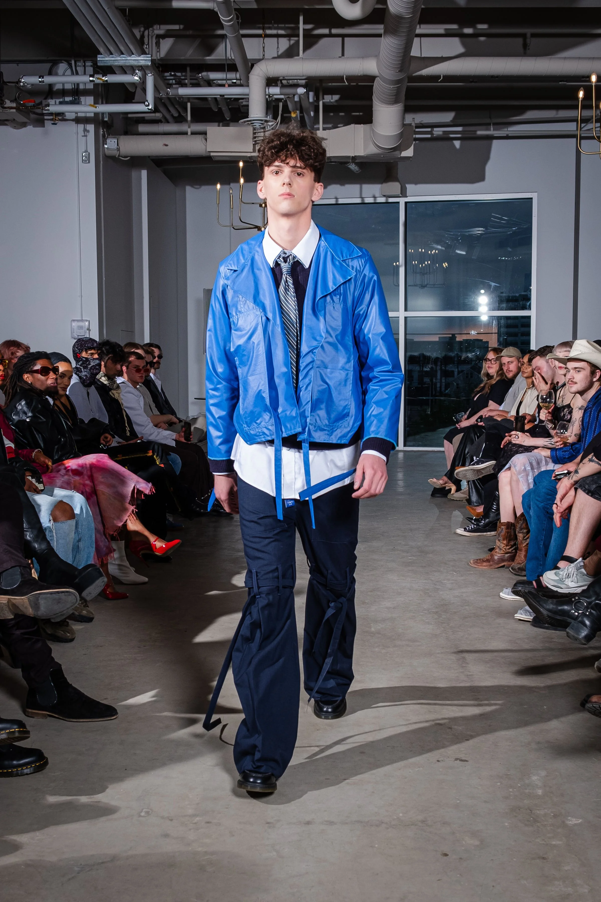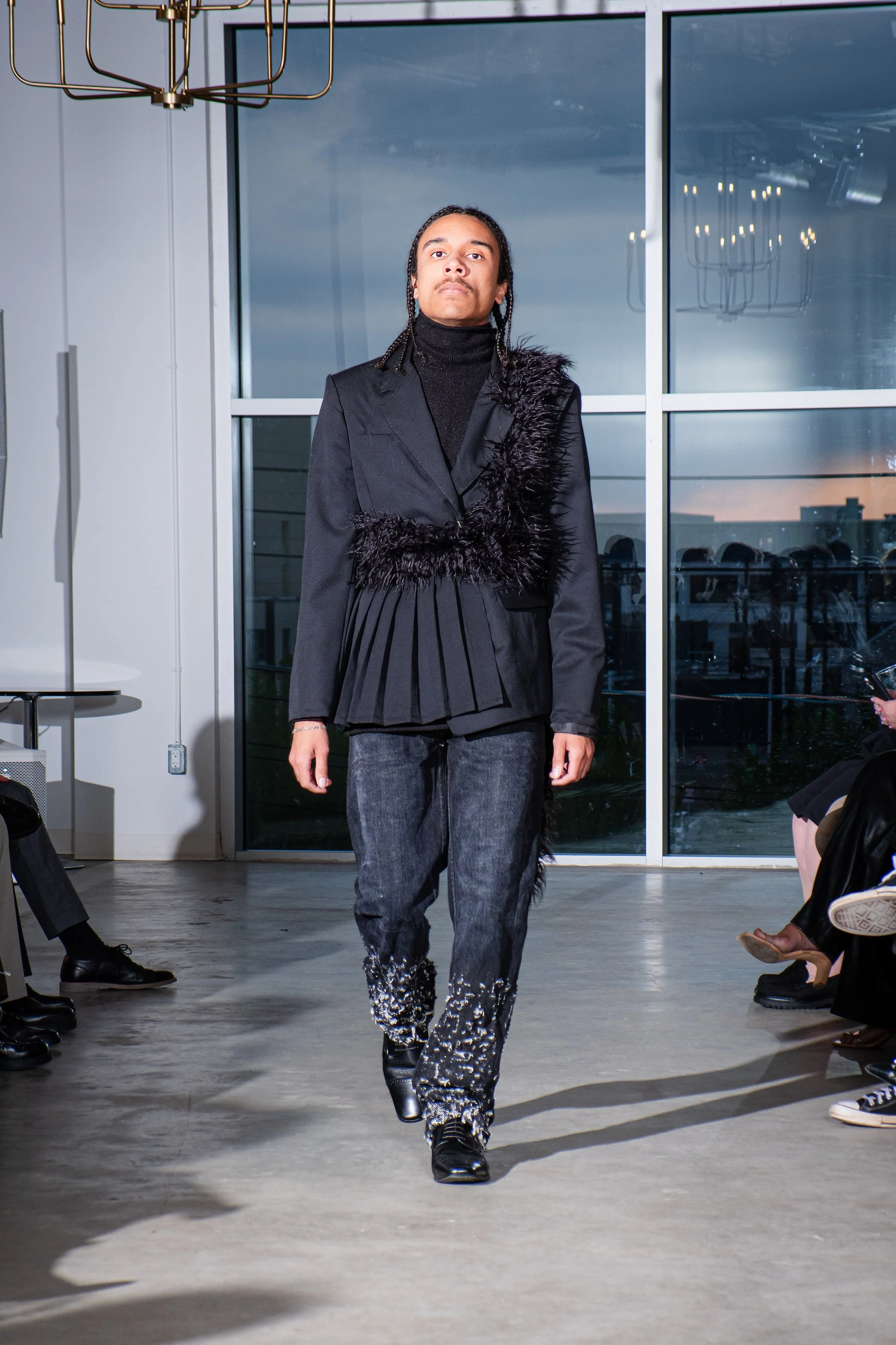 As a first cut and sewn collection, my initial idea was the word “blossom”. The word to me embodies the idea of growth, ugly to beautiful, and breaking out of the shell and growing confident and colorful. Prior to this body of work I had never publicly expressed my art or designs. This collection and show was truly a blossoming moment for me. It felt like I was breaking out of the chains. Into the public eye as as a fashion designer.