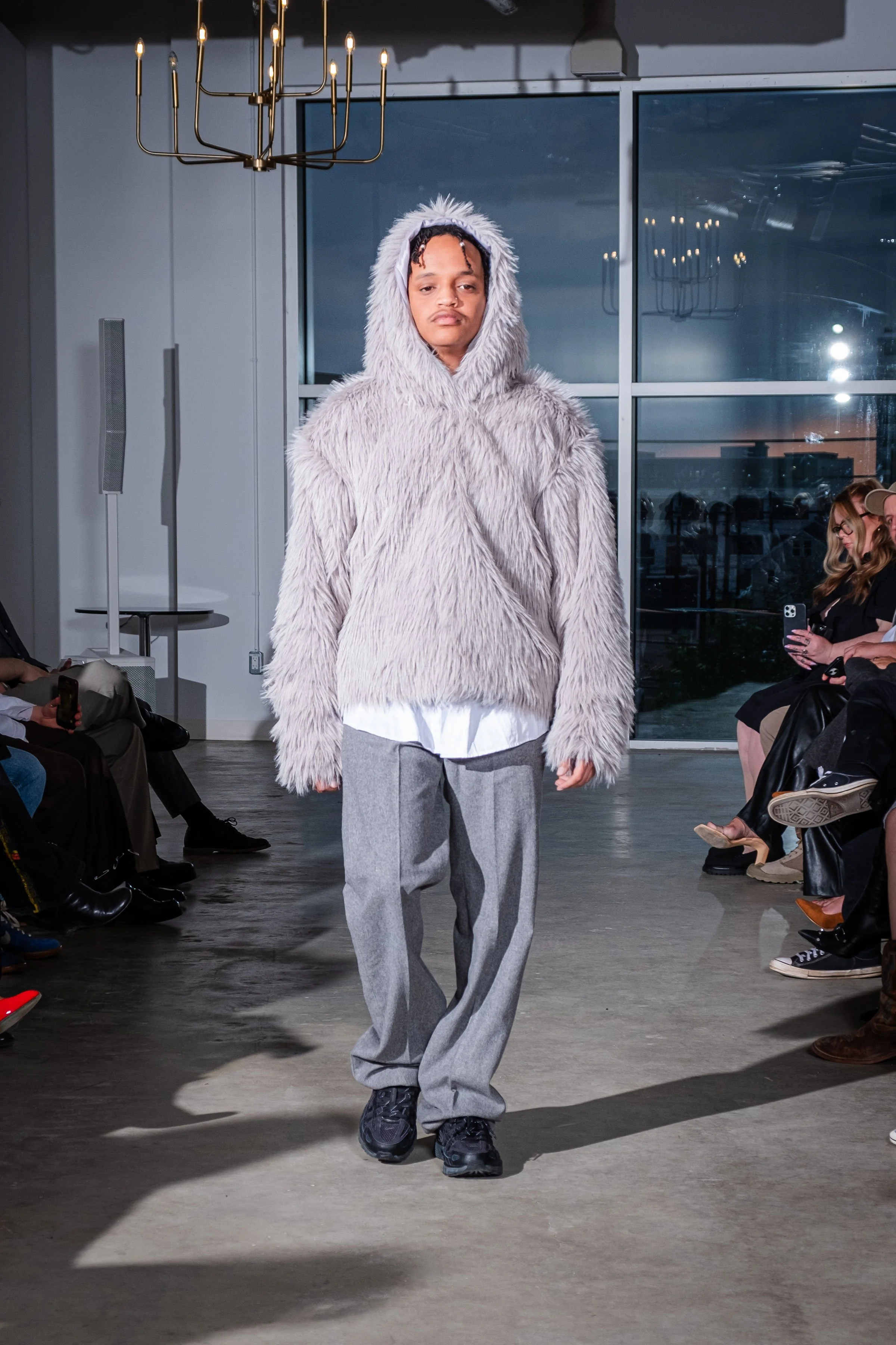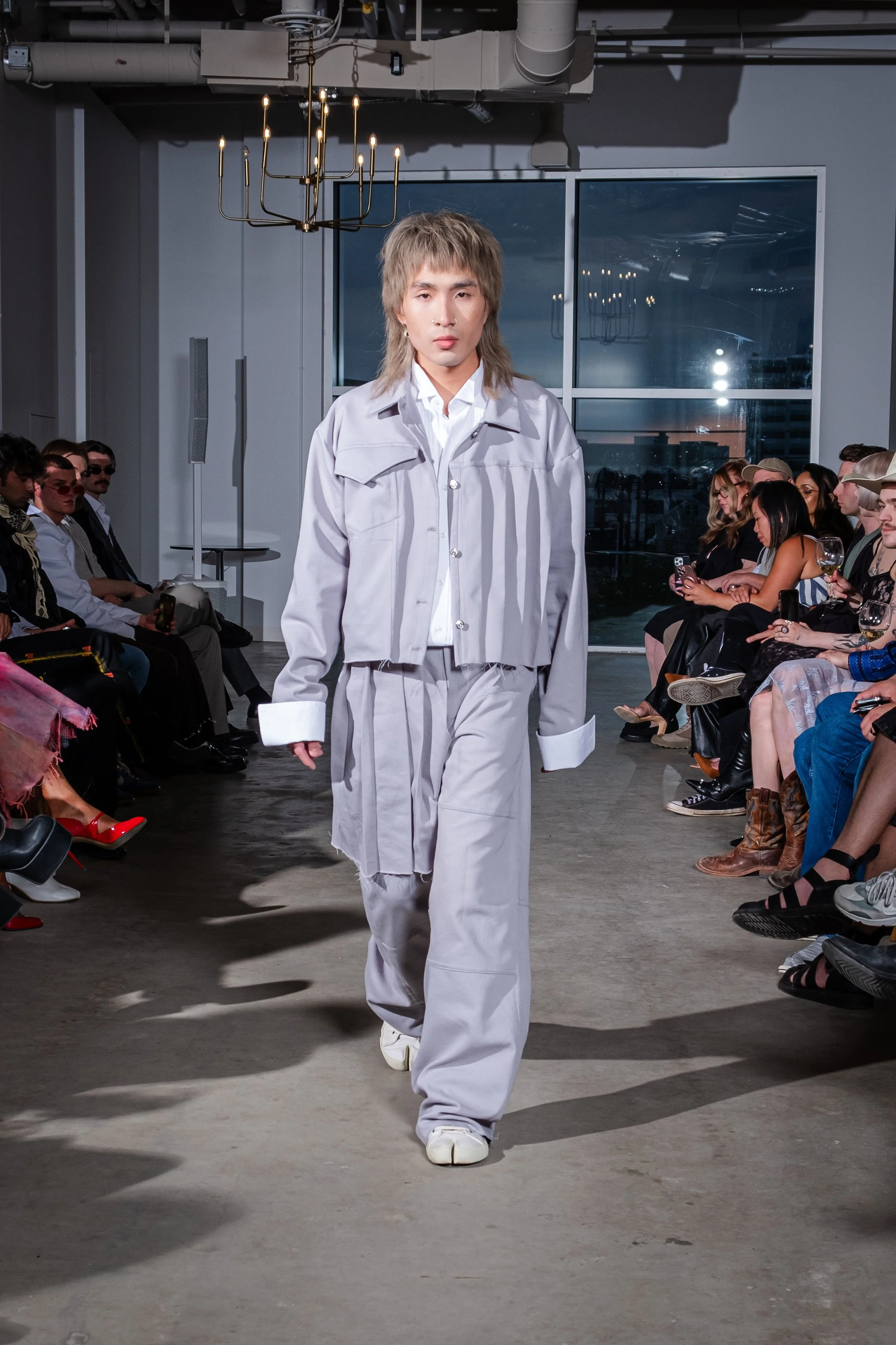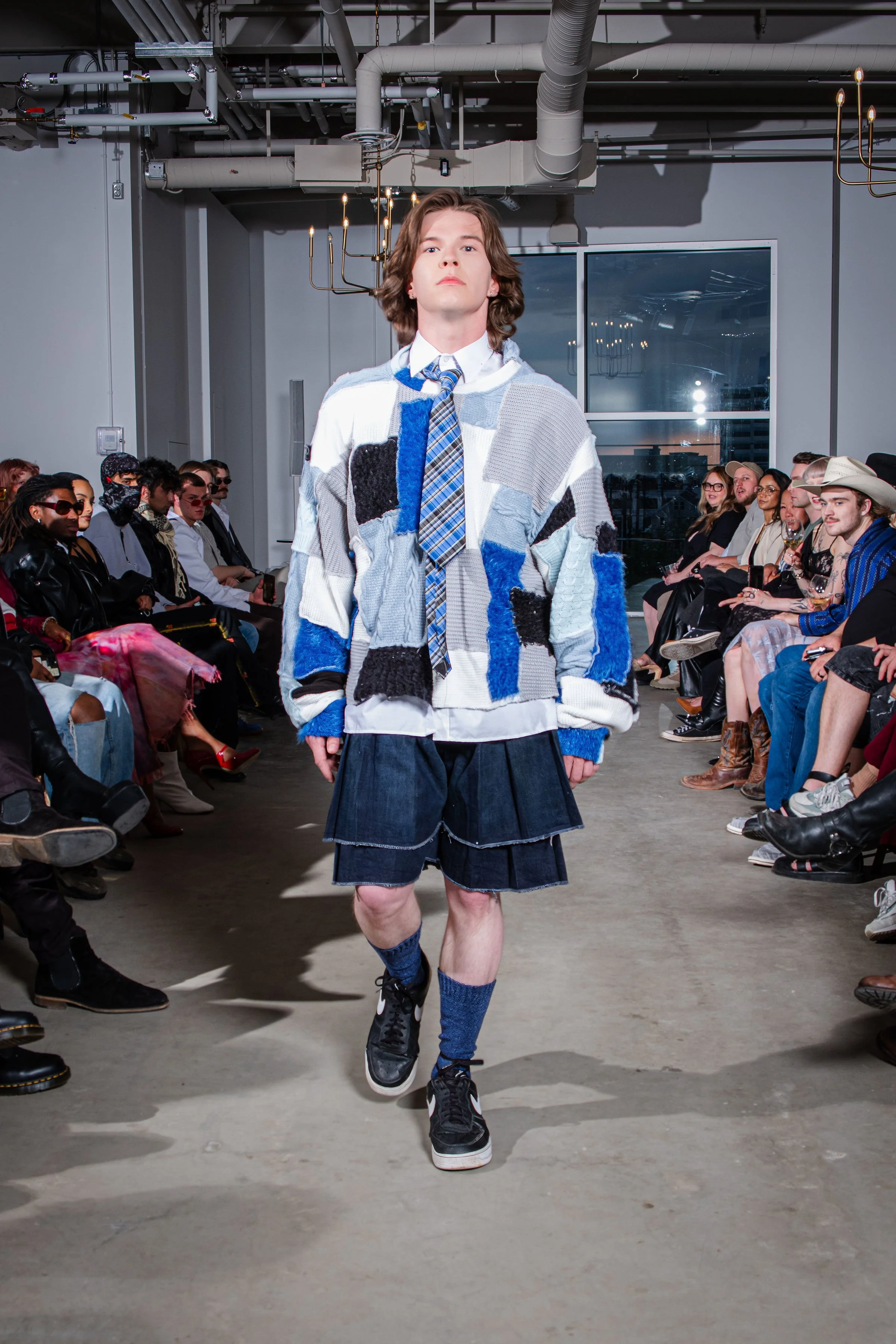 As a first cut and sewn collection, my initial idea was the word “blossom”. The word to me embodies the idea of growth, ugly to beautiful, and breaking out of the shell and growing confident and colorful. Prior to this body of work I had never publicly expressed my art or designs. This collection and show was truly a blossoming moment for me. It felt like I was breaking out of the chains. Into the public eye as as a fashion designer.