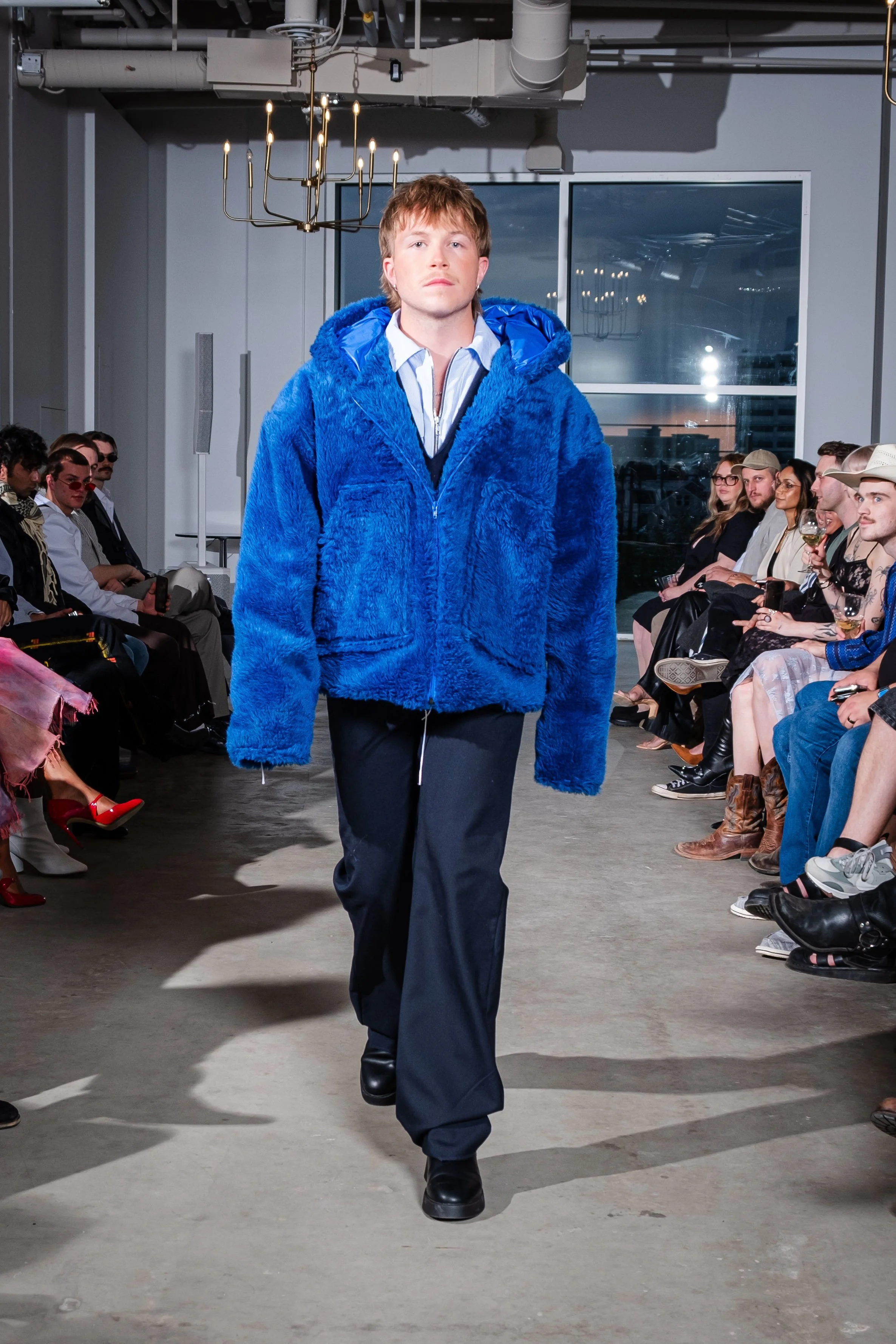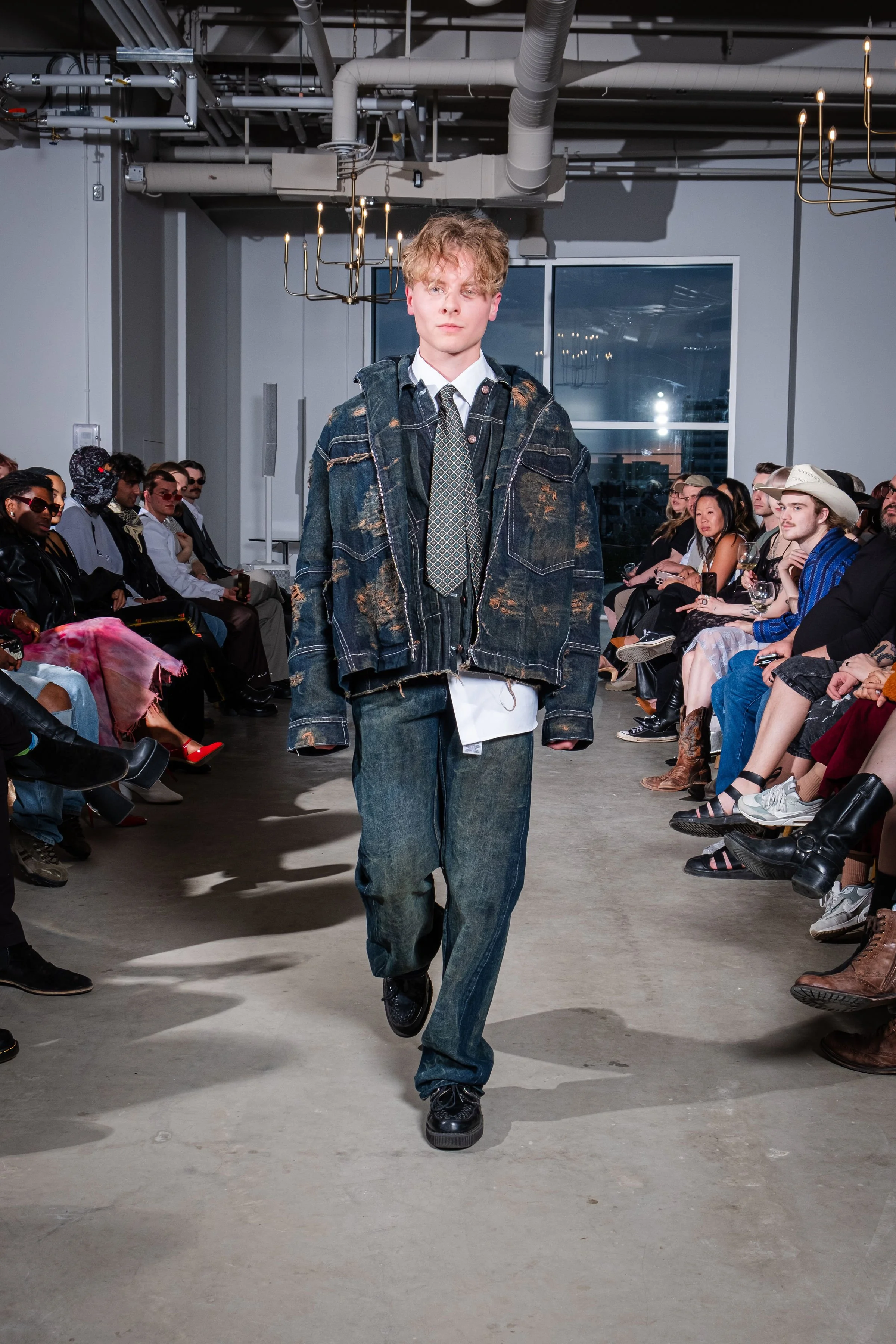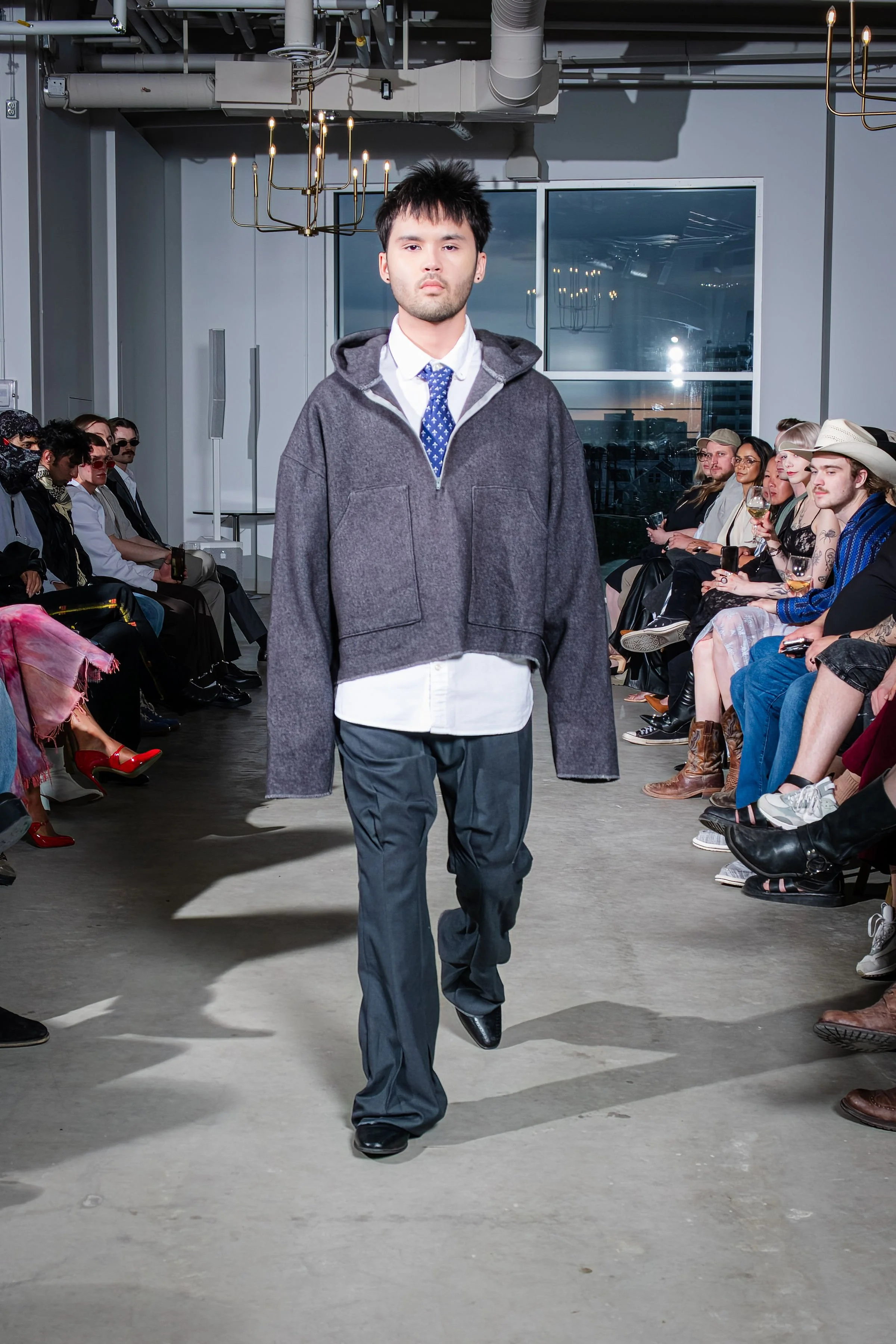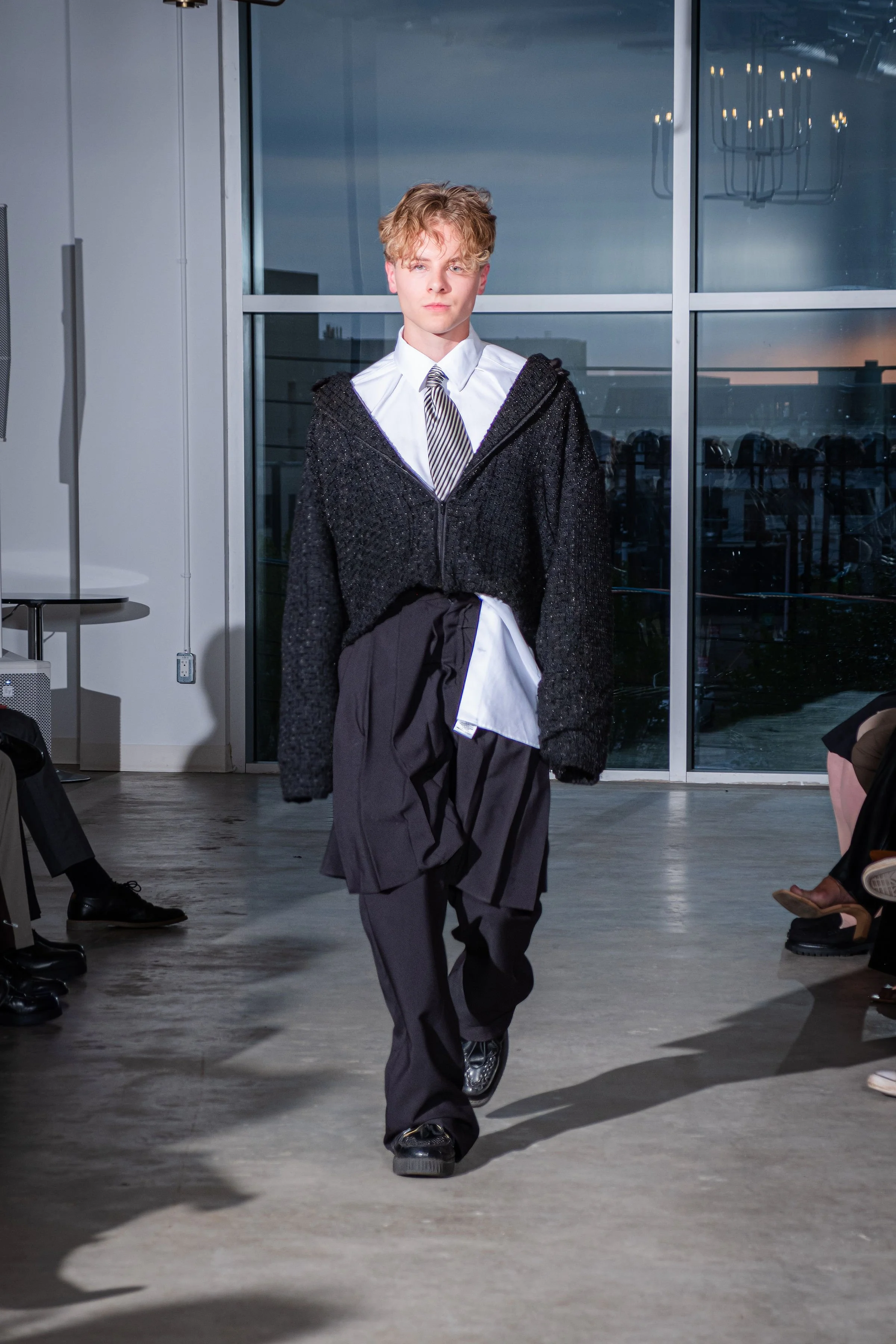 As a first cut and sewn collection, my initial idea was the word “blossom”. The word to me embodies the idea of growth, ugly to beautiful, and breaking out of the shell and growing confident and colorful. Prior to this body of work I had never publicly expressed my art or designs. This collection and show was truly a blossoming moment for me. It felt like I was breaking out of the chains. Into the public eye as as a fashion designer.